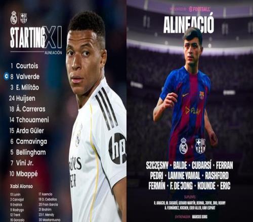 本轮西甲迎来最具话题的较量,阿隆索带领皇马强势领跑,势要冲击联赛3连胜,姆巴佩单箭头突前,贝林厄姆和维尼修斯位居两侧。