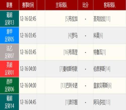 其他赛事比分: