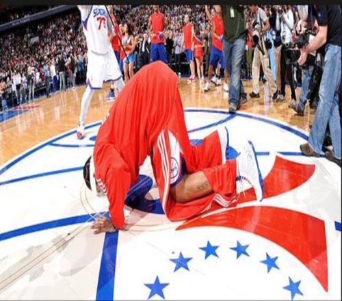 2009-10赛季,艾弗森加盟灰熊,然后又回到76人打球。回到76人的盛况空前,动情的他也俯下身去亲吻76人队徽,难舍之情溢于言表。不过,他这个赛季为76人出战了25场比赛后,还是被球队无情抛弃。
