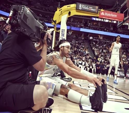 从慢镜头回看,小哈克斯持球突破,斯宾塞·琼斯重心失衡,整个人往后退了一步;就是这没有任何恶意的一步,却异常精准的直接踩在了约基奇左脚上。